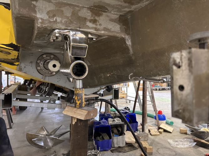 Ξεκινήσαμε με την προσεκτική εγκατάσταση των νέων I-brackets, διασφαλίζοντας τη σταθερή τοποθέτησή τους στην γάστρα του σκάφους. Χρησιμοποιώντας τον εξοπλισμό ευθυγράμμισης που διαθέτουμε, ευθυγραμμίσαμε με ακρίβεια τα brackets, θέτοντας τις βάσεις για την άψογη ενσωμάτωση του συστήματος κίνησης.